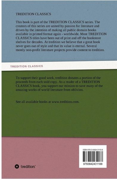 This book is part of the TREDITION CLASSICS series. The creators of this series are united by passion for literature and driven by the intention of making all public domain books available in printed format again - worldwide. At tredition we believe that a great book never goes out of style. Several mostly non-profit literature projects provide content to tredition. To support their good work, tredition donates a portion of the proceeds from each sold copy. As a reader of a TREDITION CLASSICS book, you support our mission to save many of the amazing works of world literature from oblivion.