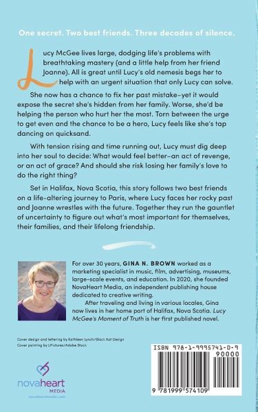 One secret. Two best friends. Three decades of silence. Lucy lives large and takes risks, conquering life's problems with breathtaking mastery-and a little help from lifelong friend Joanne. All is well until a drama resurfaces after almost 30 years. Suddenly, Lucy's life twists in a heartbeat. When her nemesis calls unexpectedly about a situation that only she can solve, Lucy learns she can redeem her past mistake by saving someone she's desperate to help. Yet doing so would expose the secret she's hidden from her family. Worse, she'd also be helping the very person who started the whole mess. Torn between the urge to get even or right a wrong, Lucy stalls in a haze of indecision because either way, she loses. With tension rising and time running out, Lucy must dig deep into her soul to decide: Will pride and the need for revenge win out? Or will she do the right thing and risk losing the love of her family when her secret is revealed? Set in Halifax, Nova Scotia, this story follows two best friends in their early fifties as they embark on a life-altering journey to Paris, where Lucy reconciles her past and Joanne faces an uncertain future. Together, they wrestle with life's tough questions about love, truth, family - and the meaning of life.