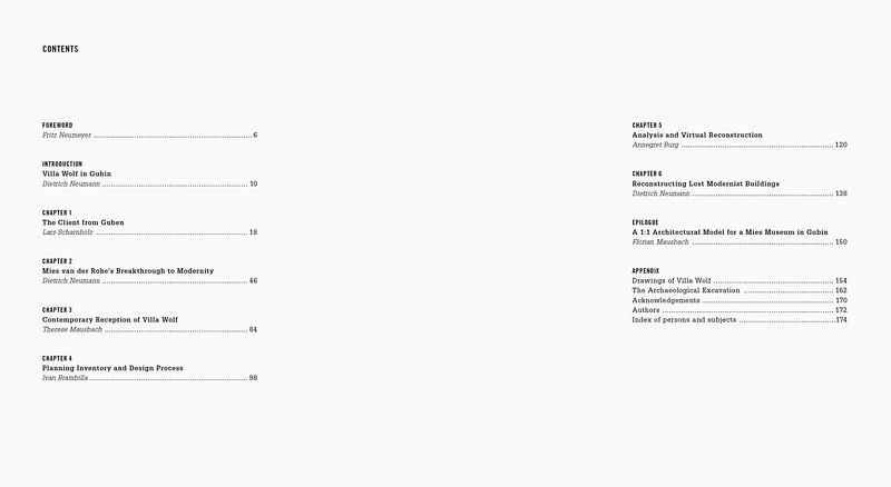 Villa Wolf in Guben (now Gubin), built between 1925 and 1927, was Ludwig Mies van der Rohe's first decidedly modern building. The residential building was destroyed at the end of the Second World War and in the immediate post-war period. The building practice of Mies van der Rohe - who is internationally known for his visionary glass skyscrapers and concrete buildings - remained conventional for a long time. With Villa Wolf, he presented a radical reinterpretation of the upper-class residential building: an open, diagonal sequence of rooms on the garden side, with the cubically-towered areas of the utility rooms and bedrooms next to it. The reception of the building was overshadowed by the great success of Mies van der Rohe's successor buildings, such as the German Pavilion in Barcelona (1928-1929) and Villa Tugendhat in Brno (1929-1930). This volume presents the history of Villa Wolf in Gubin and documents the recent excavation of the basement as well as the graphic reconstruction as a prerequisite for the building's reconstruction.