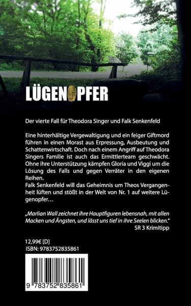 Der vierte Fall für Theodora Singer und Falk SenkenfeldEine hinterhältige Vergewaltigung und ein feiger Giftmord führen in einen Morast aus Erpressung, Ausbeutung und Schattenwirtschaft. Doch nach einem Angriff auf Theodora Singers Familie ist auch das Ermittlerteam geschwächt. Ohne ihre Unterstützung kämpfen Gloria und Viggi um die Lösung des Falls und gegen Verräter in den eigenen Reihen.Falk Senkenfeld will das Geheimnis um Theos Vergangenheit lüften und stößt in der Welt von Nr. 1 auf weitere Lügenopfer.3.Auflage