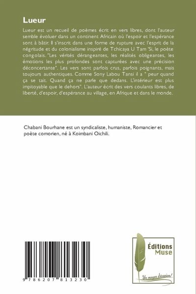 Lueur est un recueil de poèmes écrit en vers libres, dont l'auteur semble évoluer dans un continent Africain où l'espoir et l'espérance sont à bâtir. Il s'inscrit dans une forme de rupture avec l'esprit de la négritude et du colonialisme inspiré de Tchicaya U Tam 'Si, le poète congolais. "Les vérités dérangeantes, les réalités obligeantes, les émotions les plus profondes sont capturées avec une précision déconcertante". Les vers sont parfois crus, parfois poignants, mais toujours authentiques. Comme Sony Labou Tansi il a " peur quand ça se tait. Quand ça ne parle que dedans. L'intérieur est plus impitoyable que le dehors". L'auteur écrit des vers coulants libres, de liberté, d'espoir, d'espérance au village, en Afrique et dans le monde.