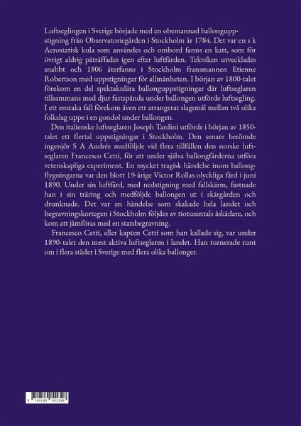 Luftseglingen i Sverige började med en obemannad ballongupp-stigning från Observatoriegården i Stockholm år 1784. Det var en s k Aerostatisk kula som användes och ombord fanns en katt, som för övrigt aldrig påträffades igen efter luftfärden. Tekniken utvecklades snabbt och 1806 återfanns i Stockholm fransmannen Etienne Robertson med uppstigningar för allmänheten. I början av 1800-talet förekom en del spektakulära ballonguppstigningar där luftseglaren tillsammans med djur fastspända under ballongen utförde luftsegling. I ett enstaka fall förekom även ett arrangerat slagsmål mellan två olika folkslag uppe i en gondol under ballongen. Den italienske luftseglaren Joseph Tardini utförde i början av 1850-talet ett flertal uppstigningar i Stockholm. Den senare berömde ingenjör S A Andrée medföljde vid flera tillfällen den norske luftseglaren Francesco Cetti, för att under själva ballong-färderna utföra vetenskapliga experiment. En mycket tragisk händelse inom ballongflygningarna var den blott 19-årige Victor Rollas olyckliga färd i juni 1890. Under sin luftfärd, med nedstigning med fallskärm, fastnade han i sin träring och medföljde ballongen ut i skärgården och drunknade. Det var en händelse som skakade hela landet och begravningskortegen i Stockholm följdes av tiotusentals åskådare, och kom att jämföras med en statsbegravning. Francesco Cetti, eller kapten Cetti som han kallade sig, var under 1890-talet den mest aktiva luftseglaren i landet. Han turnerade runt om i flera städer i Sverige med flera olika ballonger.