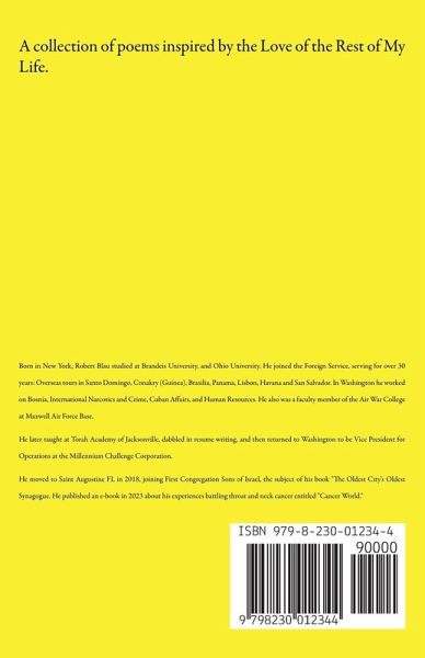 Born and raised in the New York area, Robert Blau studied undergrad at Brandeis University, did a two-year stint in the Peace Corps in West Africa, then went to grad school at Ohio University. He joined the U.S. Department of State as a Foreign Service Officer, serving for over 30 years until his retirement in 2014. Overseas tours included Santo Domingo, Conakry (Guinea), Brasilia, Panama, Lisbon, Havana and San Salvador. He had domestic assignments in Washington DC dealing with Bosnia reconstruction, International Narcotics and Crime, Cuban Affairs, and Human Resources. He also was assigned for two years as a faculty member of the Air War College at Maxwell Air Force Base. After retirement he worked as a teacher at Torah Academy of Jacksonville, dabbled in resume writing, and then returned to Washington to be Vice President for Operations at the Millennium Challenge Corporation. He returned to Florida in 2018, moving to Saint Augustine, and joining First Congregation Sons of Israel, the subject of his book "The Oldest City's Oldest Synagogue. He published a short e-book in the summer of 2023 about his experiences battling throat and neck cancer entitled "Cancer World." In 2024 he moved to Flagler Beach, FL to be under the same roof as the inspiration for this book.