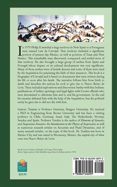 In 1579 Philip II awarded a large territory in New Spain to a Portuguese man named Luis de Carvajal. That territory included a significant portion of present day Mexico, as well as portions of Texas and New Mexico. This remarkable man discovered, conquered, and settled most of that territory. He also brought a large group of settlers from Spain and Portugal whose impact on its cultural development was very significant. Many of those settlers were of Jewish descent and some of them were tried by the Inquisition for practicing the faith of their ancestors. This book is a biography of Carvajal and is based on documents that were written during his life or soon after his death. The narrative follows him from birth to death and describes the actions he took to give rise to Nuevo Reino de León. These included explorations and discoveries; battles with free Indians; pacifications of Indian uprisings; and legal fights with Crown officials who were determined to eliminate him and to end his government. In the end his enemies defeated him with the help of the Inquisition, but the political entity he gave rise to did not die with him.