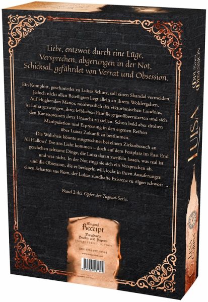 Die Wahrheit könnte ausgerechnet bei einem Zirkusbesuch an All Hallows' Eve ans Licht kommen - doch auf dem Festplatz im East End geschehen seltsame Dinge, die Luisa daran zweifeln lassen, was real ist und was nicht. In der Not ringt sie sich ein Versprechen ab, und die Obsession, die es besiegeln will, lockt in ihren Ausuferungen einen Schatten aus Rom, der Luisas sündhafte Existenz zu tilgen schwört ...