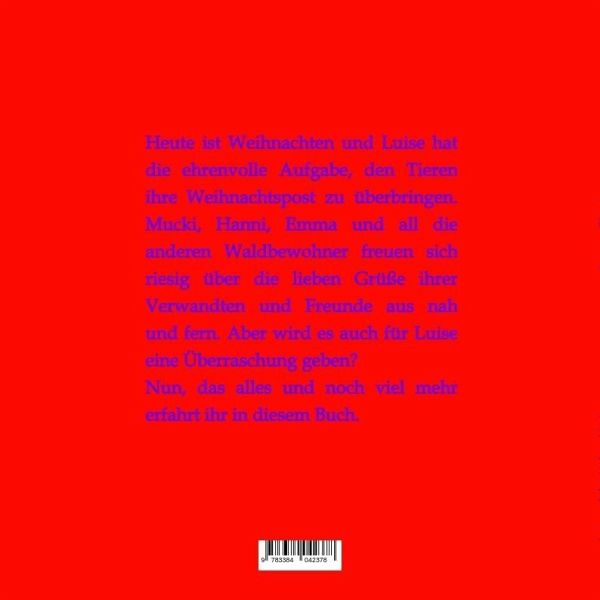 Heute ist Weihnachten und Luise, das kleine Postfräulein, hat die ehrenvolle Aufgabe, den Tieren ihre Weihnachtspost zu überbringen. Mucki, Hanni, Emma und all die anderen Waldbewohner freuen sich riesig über die lieben Grüße ihrer Verwandten und Freunde aus nah und fern. Aber wird es auch für Luise eine Überraschung geben? Erlebe mit der Postschnecke und den Waldtieren den aufregenden Weihnachtstag.