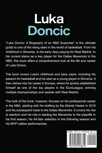 LUKA DONCIC Introducing "Luka Doncic: A Biography of an NBA Superstar" - the ultimate guide to the life and career of one of basketball's most exciting players. Discover the story behind Luka Doncic's rise to NBA superstardom, from his early years in Slovenia to his unforgettable performances on the world's biggest stage. Inside, you will learn how Luka's passion for basketball has driven him to become one of the most dominant forces in the league. Follow his journey from his early years playing for Real Madrid to his first NBA season with the Dallas Mavericks, and his meteoric rise to become one of the most exciting players in the league today. This book is perfect for anyone who wants to learn more about Luka's journey, his impact on the NBA, and what the future holds for this basketball sensation. Whether you're a dedicated Mavericks fan, an aspiring basketball player, or simply a lover of the game, "Luka Doncic: A Biography of an NBA Superstar" is an essential read that will inspire and entertain you. Don't miss out on the opportunity to own a piece of basketball history. Order your copy of "Luka Doncic: A Biography of an NBA Superstar" today and discover what makes this superstar so special!