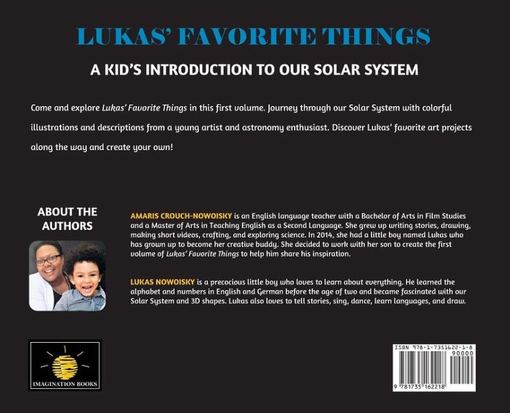 Lukas' Favorite Things: A Kid's Introduction to Our Solar System is a space activity book illustrated by 5-year-old Lukas. Lukas shares twenty-one of his beautifully illustrated pictures of our Solar System, planetary facts, photos of his favorite space projects, and seven hands-on art projects.