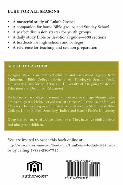 · A masterful study of Luke's Gospel · A companion for home Bible groups and Sunday School · A perfect discussion starter for youth groups · A daily study Bible or devotional guide-366 sections · A textbook for high schools and colleges · A reference for teaching and sermon preparation