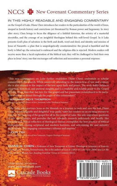In this highly readable and engaging commentary on the Gospel of Luke, Diane Chen introduces her readers to the particularities of the world of Jesus, steeped in Jewish history and convictions yet threatened by Roman power and hegemony. In story after story, Chen brings to focus the diligence of a faithful historian, the artistry of a masterful storyteller, and the courage of an insightful theologian behind this well-loved Gospel. In it Luke presents God's plan of salvation in the birth and death, word and deed, and identity and mission of Jesus of Nazareth--a plan that is unapologetically counterintuitive: the proud is humbled and the lowly is lifted up; the ostracized is embraced and the religious elite is rejected. Modern readers will receive more than a lucid explanation of the biblical text; they will be challenged to find their own place in Jesus' story, one that encourages self-reflection and necessitates a personal response.