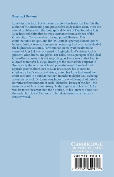 The purpose of this book is to seek a fuller understanding of how the characterisation of Paul in Acts would have been perceived by those who first read or heard the Lucan narrative. As the author makes clear, the careful reader of Acts should be amazed at the way St Paul is portrayed therein. Dr Lentz demonstrates, through a careful examination of particular texts, the great improbability that a Jew of strict Pharisaic background would have held, let alone been proud of, Roman citizenship and citizenship of the city of Tarsus. By investigating the social and legal expectations of the first century, the author shows that Paul is seen to be deferred to in matters of legal minutiae by those in positions of authority. He is given high social status and abundant moral virtue in order to attract to Christianity the high-ranking citizen who would recognise in Paul the classical cardinal virtues.