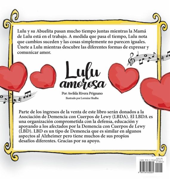 Esta es la historia de una niña llamada Lulu que pasa mucho tiempo con su Abuelita mientras su mamá está trabajando. Los días de Lulu están llenos de actividades como escuchar música, aprender a cocinar y aprender a hablar español. A veces, puede ayudar a Abuelita a cuidar a los bebés. A medida que pasa el tiempo, Lulu se da cuenta de que se están produciendo cambios y las cosas no parecen iguales con Abuelita. Únete a Lulu mientras descubre las diferentes formas que existen para expresar y comunicar el amor en lo que vemos, oímos y sentimos. La esperanza del autor es que al compartir esta historia, la lección sea aceptada tanto por adultos como por niños.