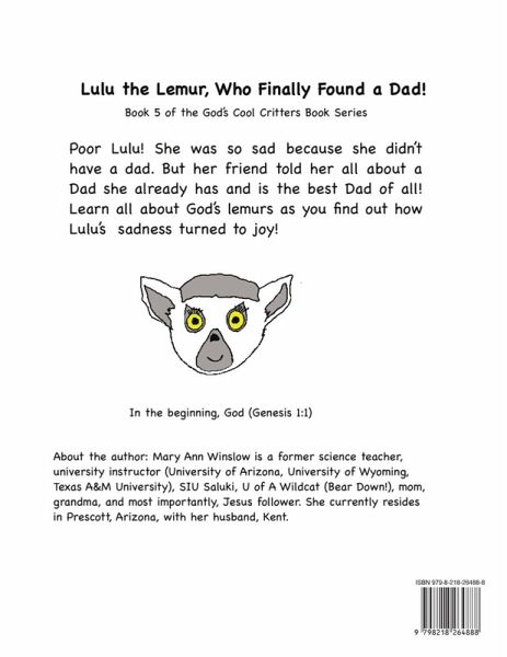 Poor Lulu! She was so sad because she didn't have a dad. But her friend told her all about a Dad she already has and is the best Dad of all! Learn all about God's lemurs as you find out how Lulu's sadness became joy!