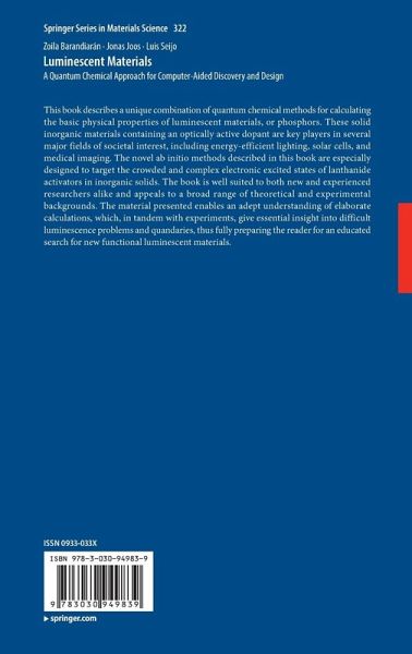 This book describes a unique combination of quantum chemical methods for calculating the basic physical properties of luminescent materials, or phosphors. These solid inorganic materials containing an optically active dopant are key players in several major fields of societal interest, including energy-efficient lighting, solar cells, and medical imaging. The novel ab initio methods described in this book are especially designed to target the crowded and complex electronic excited states of lanthanide activators in inorganic solids. The book is well suited to both new and experienced researchers alike and appeals to a broad range of theoretical and experimental backgrounds. The material presented enables an adept understanding of elaborate calculations, which, in tandem with experiments, give essential insight into difficult luminescence problems and quandaries, thus fully preparing the reader for an educated search for new functional luminescent materials