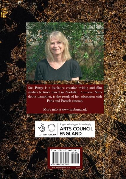 Sue Burge is a poet and freelance creative writing and film studies tutor based in North Norfolk. Lumière was written during a residency in Paris. This residency allowed Sue to combine her three great passions - Paris, poetry and the cinema in order to create a unique poetic response to the city's cinematic legacy.