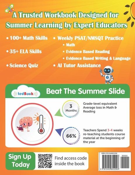 STOP SUMMER SLIDE! 2025 SUMMER LEARNING HEADSTART(TM) 9TH TO 10TH GRADE SUMMER WORKBOOK - SUMMER ACTIVITY with AI Tutor & Science Quizzes (Ages 14-15) Prevent summer slide with the Summer Learning HeadStart(TM), the top 9th-grade summer workbook for parents and teachers! This summer workbook for grades 9-10 bridges grade 9 to grade 10, the summer before 10th grade, with 15-minute summer bridge activities in math, reading, writing, and science. Common core-aligned with 2025 standards and offers a fun summer activity to keep kids engaged. NEW FOR 2025: AI Tutor & Science Boost! * AI Tutor (Luma): Instant feedback and step-by-step help for ALL online questions-exclusive to our Summer Learning HeadStart(TM) Workbooks! * Weekly Science Quizzes: Interactive quizzes make summer learning fun. * Updated 2025 Content: Common core-aligned for a smooth back-to-school transition. * Summer Story Competition: Submit entries online to win a $100 Amazon Gift Card! Why This Summer Learning Workbook Stands Out * 15-Minute Bridge Activities: Practice anywhere-road trips, home, or bedtime-perfect for the summer before 10th grade. * Fun & Engaging: Puzzles and active learning adventures make this a top kids' summer activity Book. * Comprehensive Coverage: Features standards-aligned content covering essential subjects like reading, writing, vocabulary, mathematics, and Science. * Answer Key & Explanations: Helps Parents evaluate and provide feedback for kids to learn from mistakes. * Proven Success: Trusted by 1.5 M+ students, 186,400+ teachers, 67,100+ schools, and 100+ libraries for a confident 2nd-grade start. What's Inside This Summer Workbook: PRINT WORKBOOK: 1. 10 Weeks of Activities: Includes eight questions for each day of the week, making summer bridge activities for 9th to 10th grade fun. * Math: Fact fluency, place value, geometry, addition, subtraction, telling time. * Reading & Writing: Phonics, comprehension, poetry. * Science: Weekly quiz support 2. Answer Key & Explanations: Track progress easily. FREE ONLINE PROGRAM: * Lumos AI Tutor: Instant feedback and guidance for every online question. * Weekly Science Quizzes: Fun, interactive summer learning challenges. * Daily Challenges: Math and English online practice. * Summer Reading List & Story Competition: Explore a summer reading list and submit stories to win prizes! Perfect For * Preventing Summer Learning Loss * Building 10th-Grade Confidence * Homeschooling or Daily Practice Give your child the Summer Learning HeadStart(TM) advantage with this 9th to 10th grade summer workbook! Ideal for at-home learning, homeschooling, tutoring, or camps, these summer workbooks offer fun summer bridge activities and online practice to prevent summer slide and ensure effective summer learning all summer! With the Lumos Summer Learning HeadStart tedBook(TM) by your side, your child will be better prepared and more confident to start the 2025-26 School year. Give your student the Lumos Summer advantage today!