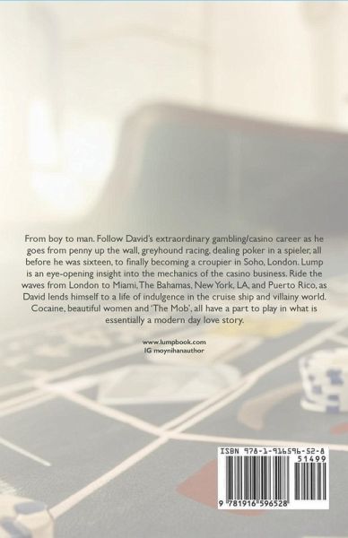 From boy to man. Follow David's extraordinary gambling career as he goes from penny up the wall, to a croupier in Soho, London. A fabulous insight into the mechanics of the casino business from, London to Miami, New York, amongst a multitude of other exotic places. Ride the waves as 'Lump' lends itself to a life of indulge in the villainy world. Cocaine, beautiful women and 'The Mob', all have a part to play in what is essentially, a modern-day love story!