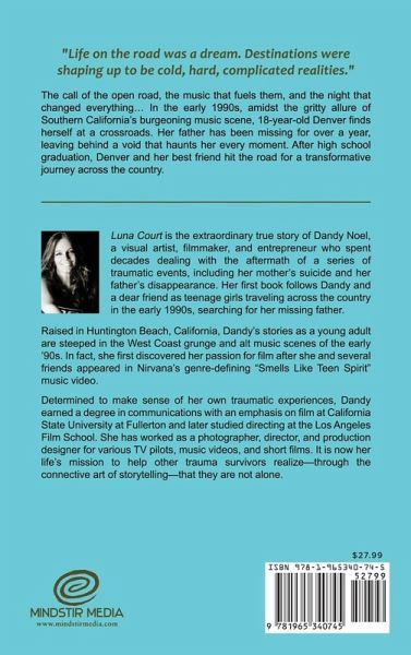 "Life on the road was a dream. Destinations were shaping up to be cold, hard, complicated realities." The call of the open road, the music that fuels them, and the night that changed everything... In the early 1990s, amidst the gritty allure of Southern California's burgeoning music scene, 18-year-old Denver finds herself at a crossroads. Her father has been missing for over a year, leaving behind a void that haunts her every moment. After high school graduation, Denver and her best friend hit the road for a transformative journey across the country.