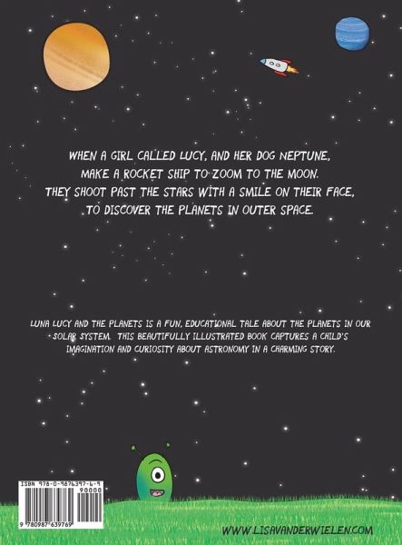 When a girl called Lucy, and her dog Neptune, Make a rocket ship to zoom to the moon. They shoot past the stars with a smile on their face, To discover the planets in outer space. Luna Lucy and the Planets is a fun, educational tale about the planets in our Solar System. This beautifully illustrated book captures a child's imagination and curiosity about astronomy in a charming bedtime story. This unique book belongs in both the Junior Fiction and Junior Non-Fiction section of the library, as it makes a wonderful teaching and learning resource. Luna Lucy is book one of the Luna Lucy series, a story about how the shape of the moon changes each day, teaching the phases of the moon in both the northern and southern hemisphere. Luna Lucy and the Planets is book two of the series, teaching the planets of the solar system. Luna Lucy and the Stars is book three of the series, teaching the stars and constellations. Download a FREE Luna Lucy and the Planets work booklet from Lisa's website. A useful teaching and learning resource about the Planets and Solar System : https://www.lisavanderwielen.com/_files/ugd/77a35c_39f770b6082b4094828fbebdb201248b.pdf