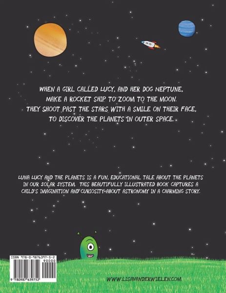 When a girl called Lucy, and her dog Neptune, Make a rocket ship to zoom to the moon. They shoot past the stars with a smile on their face, To discover the planets in outer space. Luna Lucy and the Planets is a fun, educational tale about the planets in our Solar System. This beautifully illustrated book captures a child's imagination and curiosity about astronomy in a charming bedtime story. This unique book belongs in both the Junior Fiction and Junior Non-Fiction section of the library, as it makes a wonderful teaching and learning resource. Luna Lucy is book one of the Luna Lucy series, a story about how the shape of the moon changes each day, teaching the phases of the moon in both the northern and southern hemisphere. Luna Lucy and the Planets is book two of the series, teaching the planets of the solar system. Luna Lucy and the Stars is book three of the series, teaching the stars and constellations. Download a FREE Luna Lucy and the Planets work booklet from Lisa's website. A useful teaching and learning resource about the Planets and Solar System : https://www.lisavanderwielen.com/_files/ugd/77a35c_39f770b6082b4094828fbebdb201248b.pdf