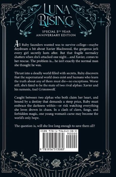 All Ruby Saunders wanted was to survive college-maybe daydream a bit about Xavier Blackwood, the gorgeous jerk every girl secretly lusts after. But that fragile normalcy shatters when she's attacked one night...and Xavier, comes to her rescue. The problem is... he isn't exactly the normal man she thought he was. Thrust into a deadly world filled with secrets, Ruby discovers that the supernatural world does exist and humans who learn the truth about any of them must die-no exceptions. Worse still, she's fated to be the mate of two rival alphas: Xavier and his nemesis, Axel Grimmwolf. Caught between two alphas who both claim her heart, and bound by a destiny that demands a steep price, Ruby must embrace the darkness within-or risk watching everything she loves drown in chaos. In a clash of claws, fangs, and forbidden magic, one young woman's curse may become the world's only hope.