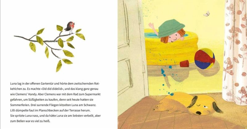 Luna, der kleine Hundewelpe freut sich schon sehr auf den Familienurlaub am See. Aber dann bringt Pipi, der Feriengast-Hund, alles durcheinander. Die ganze Familie ist total hingerissen von dem kleinen weißen Hundewelpen mit den schwarzen Punkten und Luna spielt nur noch eine Nebenrolle. Eifersüchtig zieht Luna sich zurück und wandert traurig allein durch den Wald. Sollen die doch mit Pipi spielen! Aber irgendwann vermissen alle Luna und machen sich auf die Suche nach ihr. Dabei erweist sich Pipi als tolle Spürnase - und auch als eine echter Ferienfreund.