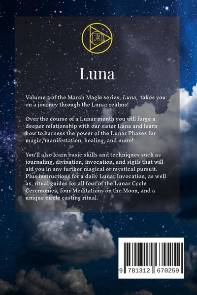 Volume 2 of the March Magic series, Luna, takes you on a journey through the Lunar realms! Over the course of a Lunar month you will forge a deeper relationship with our sister Luna and learn how to harness the power of the Lunar Phases for magic, manifestation, healing, and more! You'll also learn basic skills and techniques such as journaling, divination, invocation, and sigils that will aid you in any further magical or mystical pursuit. Plus instructions for a daily Lunar Invocation, as well as, ritual guides for all four of the Lunar Cycle Ceremonies, four Meditations on the Moon, a unique circle casting ritual, and more!