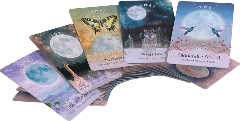 Der Mond ist seit alters her das Symbol für Intuition, Weiblichkeit und Spiritualität. Tauche mit diesen wunderschönen Karten von Alice Kendall tief ein in die faszinierende Magie des Mondes: Lerne Mondphasen kennen, Mondgöttinnen sowie Tiere des Mondes, die dich auf deiner Reise zu deiner inneren Wahrheit begleiten. Ziehe eine Karte als tägliche Inspiration, als Antwort zu deinen Lebensfragen oder zu bestimmten lunaren Ereignissen. Im Booklet findest du einfühlsame Deutungstexte, ausführliches Hintergrundwissen und kreative Legemuster. Lass dich von der Magie des Mondes verzaubern!