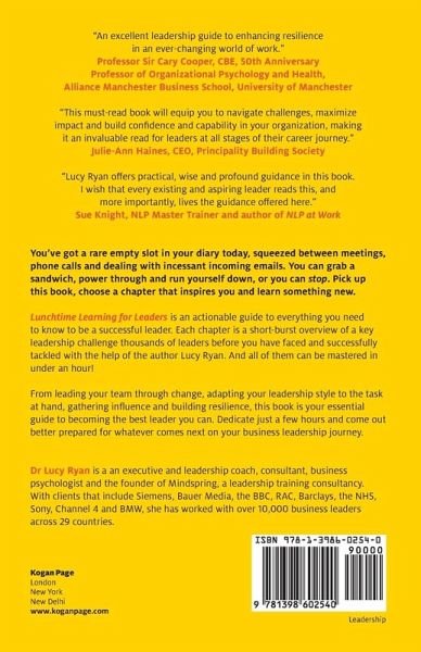 "Lunchtimes will never be the same again! I love this kind of book - clear, sparkling, full of leadership insights, evidence and practicalities and written in an incisive, no-nonsense style. Lucy Ryan has a gift for cutting through the complex and landing serious leadership points in a digestible format. Recommended reading for anyone looking to increase their bandwidth and personal growth as a positive leader." Fiona Parashar, CEO, Leadership Coaching Ltd