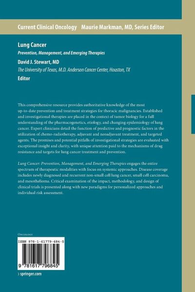 "This comprehensive review of prevention and treatment strategies for malignancies of the thorax thoroughly investigates tumor biology and discusses established and emerging therapies. ... The book is written for a wide audience that includes pathologists, pulmonologists, medical oncologists, radiation oncologists, and surgical oncologists. ... I would highly recommend this book to anyone interested in current and future therapies for lung cancer. This is one of the most comprehensive and up-to-date accounts of the field." (Nagendra S. Koneru, Doody's Review Service, July, 2010)