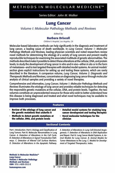 The Methods in Molecular Medicine series is intended as a resource for both novice and experienced investigators attempting to diversify their tech- logical base in research. Lung Cancer: Volume 1: Molecular Pathology Me- ods and Reviews presents an overview of the current status of assays employed to detect and characterize the multitude of pathologies that contribute to the development of this deadly disease. As with all volumes in the Methods in Molecular Medicine series, the reader should find that each methods-based chapter provides clear instructions for the performance of various protocols, supplemented by additional technical notes that provide valuable insight. These notes are designed to enable the reader to acquire the techniques described with a proficiency not easily achieved by re- ing standard method formats. No volume can exhaustively cover every aspect of biological research and there will be gaps in this endeavor that one or another research group will id- tify.Each section herein could readily be expanded into a book in its own right. However, I have sought to include a spectrum of techniques that should allow for the acquisition of key skills in each area covered.