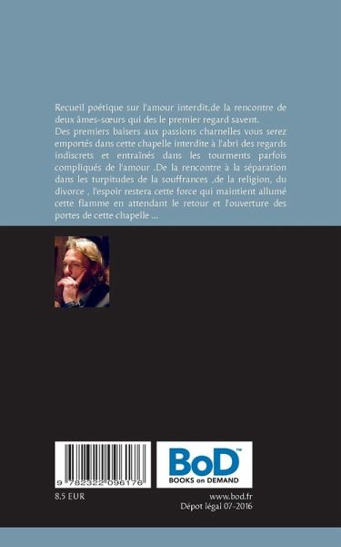 Des premiers baisers échangés aux passions charnelles vous serez emportés dans cette chapelle interdite à l'abri des regards indiscrets et entraînés dans les tourments de l'amour qui peu à peu se dévoile compliqué. ...De la rencontre à la séparation dans les turpitudes de la souffrances ,de la religion, du divorce , l'espoir restera cette force qui maintient allumé cette flamme en attendant le retour et l'ouverture des portes de cette chapelle ....L'amour est en marche sur les chemins de la liberté...