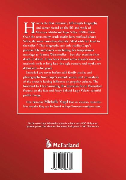 Here is the first extensive, full-length biography and career record on the life and work of Mexican whirlwind Lupe Velez (1908-1944). Over the years many crude myths have surfaced about Velez, the most notorious that she ""died with her head in the toilet."" This biography not only studies Lupe's personal life and career--including her tempestuous marriage to Johnny Weissmuller--but also examines her death in detail. It has been almost seven decades since her untimely end; at long last, the ugly rumors and myths are debunked--for good. Included are never-before-told family stories and photographs from Lupe's second cousin, and an analysis of the actress's lasting influence on popular culture. The foreword by Oscar-winning film historian Kevin Brownlow focuses on the fact and fancy behind Lupe Velez's colorful public image.