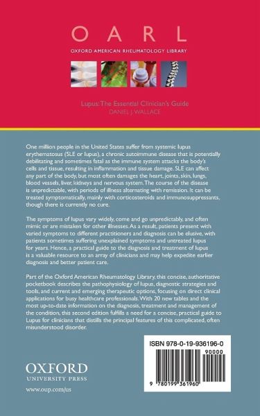 One million people in the United States suffer from systemic lupus erythematosus (SLE or lupus), a chronic autoimmune disease that is potentially debilitating and sometimes fatal as the immune system attacks the body's cells and tissue, resulting in inflammation and tissue damage. SLE can affect any part of the body, but most often damages the heart, joints, skin, lungs, blood vessels, liver, kidneys and nervous system. The course of the disease is unpredictable, with periods of illness alternating with remission. It can be treated symptomatically, mainly with corticosteroids and immunosuppressants, though there is currently no cure. The symptoms of lupus vary widely, come and go unpredictably, and often mimic or are mistaken for other illnesses. As a result, patients present with varied symptoms to different practitioners and diagnosis can be elusive, with patients sometimes suffering unexplained symptoms and untreated lupus for years. Hence, a practical guide to the diagnosis and treatment of lupus is a valuable resource to an array of clinicians and may help expedite earlier diagnosis and better patient care. Part of the Oxford American Rheumatology Library, this concise, authoritative pocketbook describes the pathophysiology of lupus, diagnostic strategies and tools, and current and emerging therapeutic options, focusing on direct clinical applications for busy healthcare professionals. With 20 new tables and the most up-to-date information on the diagnosis, treatment and management of the condition, this second edition fulfills a need for a concise, practical guide to Lupus for clinicians that distills the principal features of this complicated, often misunderstood disorder.
