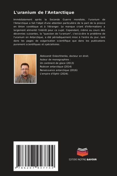 Immédiatement après la Seconde Guerre mondiale, l'uranium de l'Antarctique a fait l'objet d'une attention particulière de la part de la presse en Union soviétique et à l'étranger. Le manque criant d'informations a largement alimenté l'intérêt pour ce sujet. Cependant, même au cours des décennies suivantes, la "question de l'uranium", c'est-à-dire le problème de l'uranium en Antarctique, a été périodiquement mise à l'ordre du jour, tant dans les pages de vulgarisation scientifique que dans les publications purement scientifiques et spécialisées.