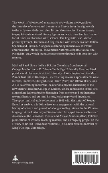 This work is Volume 2 of an extensive two-volume monograph on the interplay of science and literature in Europe from the eighteenth to the early twentieth centuries. It comprises a series of some twenty biographies raisonnées of literary figures known to have had fascination for, at times an obsession with, science. The linguistic base is broad, primarily French, German and English, but with excursions into Italian, Spanish and Russian. Alongside outstanding individuals, the work chronicles the intellectual movements Naturphilosophie, Naturalism, Positivism, etc., which literature gave rise to through its interaction with science.