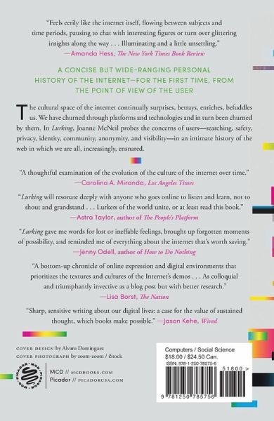 One of Esquire's Best Books to Elevate Your Reading List in 2020, , and a OneZero Best Tech Book of 2020. Named one of the 100 Notable books of 2020 by the End of the World Review. A concise but wide-ranging personal history of the internet from-for the first time-the point of view of the user In a shockingly short amount of time, the internet has bound people around the world together and torn us apart and changed not just the way we communicate but who we are and who we can be. It has created a new, unprecedented cultural space that we are all a part of-even if we don't participate, that is how we participate-but by which we're continually surprised, betrayed, enriched, befuddled. We have churned through platforms and technologies and in turn been churned by them. And yet, the internet is us and always has been. In Lurking, Joanne McNeil digs deep and identifies the primary (if sometimes contradictory) concerns of people online: searching, safety, privacy, identity, community, anonymity, and visibility. She charts what it is that brought people online and what keeps us here even as the social equations of digital life-what we're made to trade, knowingly or otherwise, for the benefits of the internet-have shifted radically beneath us. It is a story we are accustomed to hearing as tales of entrepreneurs and visionaries and dynamic and powerful corporations, but there is a more profound, intimate story that hasn't yet been told. Long one of the most incisive, ferociously intelligent, and widely respected cultural critics online, McNeil here establishes a singular vision of who we are now, tells the stories of how we became us, and helps us start to figure out what we do now.