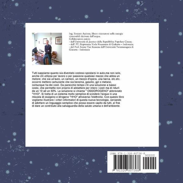 Tutti sappiamo quanto sia diventato costoso spostarsi in auto,ma non solo, anche chi utilizza per lavoro o per passione qualsiasi mezzo che abbia un motore; che sia un'auto, un camion, un mezzo d'opera, una barca, etc.etc. occorre mettere carburante che sia benzina, gasolio, gpl o metano, comunque ha dei costi. Da parecchio tempo c'è una soluzione a basso costo, che permette non proprio di abbattere per intero i costi ma di ridurli da un 10 ad un 50%%. La soluzione si chiama " OSSIDROGENO" abbreviato "HHO". Si tratta di un sistema molto semplice di scindere l'acqua in una miscela di ossigeno e idrogeno "HHO" attraverso l'elettrolisi. Con questo libro vogliamo illustrare i criteri informatori di questa nuova tecnologia, cercando di adottare un linguaggio semplice che possa essere capito da tutti, al fine di dare un contributo alla salvaguardia della salute umana e dell'ambiente.