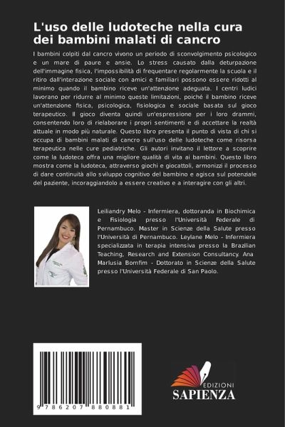 I bambini colpiti dal cancro vivono un periodo di sconvolgimento psicologico e un mare di paure e ansie. Lo stress causato dalla deturpazione dell'immagine fisica, l'impossibilità di frequentare regolarmente la scuola e il ritiro dall'interazione sociale con amici e familiari possono essere ridotti al minimo quando il bambino riceve un'attenzione adeguata. I centri ludici lavorano per ridurre al minimo queste limitazioni, poiché il bambino riceve un'attenzione fisica, psicologica, fisiologica e sociale basata sul gioco terapeutico. Il gioco diventa quindi un'espressione per i loro drammi, consentendo loro di rielaborare i propri sentimenti e di accettare la realtà attuale in modo più naturale. Questo libro presenta il punto di vista di chi si occupa di bambini malati di cancro sull'uso delle ludoteche come risorsa terapeutica nelle cure pediatriche. Gli autori invitano il lettore a scoprire come la ludoteca offra una migliore qualità di vita ai bambini. Questo libro mostra come la ludoteca, attraverso giochi e giocattoli, armonizzi il processo di dare continuità allo sviluppo cognitivo del bambino e agisca sul potenziale del paziente, incoraggiandolo a essere creativo e a interagire con gli altri.