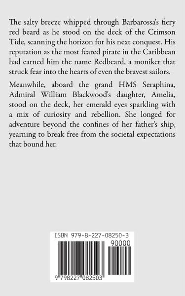 The salty breeze whipped through Barbarossa's fiery red beard as he stood on the deck of the Crimson Tide, scanning the horizon for his next conquest. His reputation as the most feared pirate in the Caribbean had earned him the name Redbeard, a moniker that struck fear into the hearts of even the bravest sailors. Meanwhile, aboard the grand HMS Seraphina, Admiral William Blackwood's daughter, Amelia, stood on the deck, her emerald eyes sparkling with a mix of curiosity and rebellion. She longed for adventure beyond the confines of her father's ship, yearning to break free from the societal expectations that bound her.