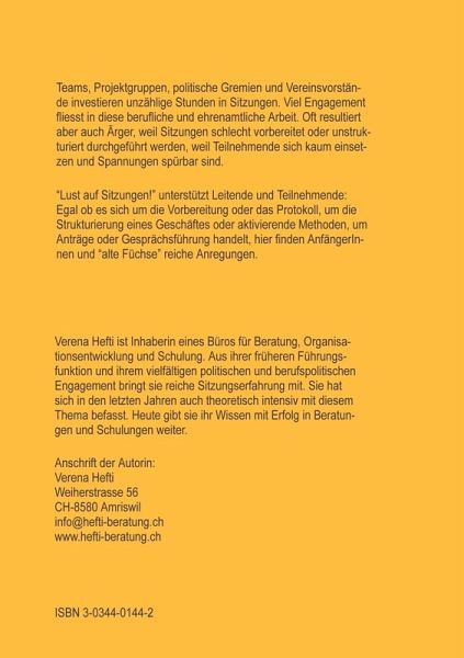 Teams, Projektgruppen, politische Gremien und Vereinsvorstände investieren unzählige Stunden in Sitzungen. Viel Engagement fliesst in diese berufliche und ehrenamtliche Arbeit. Oft resultiert aber auch Ärger, weil Sitzungen schlecht vorbereitet oder unstrukturiert durchgeführt werden, weil Teilnehmende sich kaum einsetzen und Spannungen spürbar sind."Lust auf Sitzungen" unterstützt Leitende und Teilnehmende: Egal ob es sich um die Vorbereitung oder das Protokoll, um die Strukturierung eines Geschäftes oder aktivierende Methoden, um Anträge oder Gesprächsführung handelt, hier finden Anfängerinnen und "alte Füchse" reiche Anregungen.Das Buch ist auf schweizerische Verhältnisse ausgerichtet.