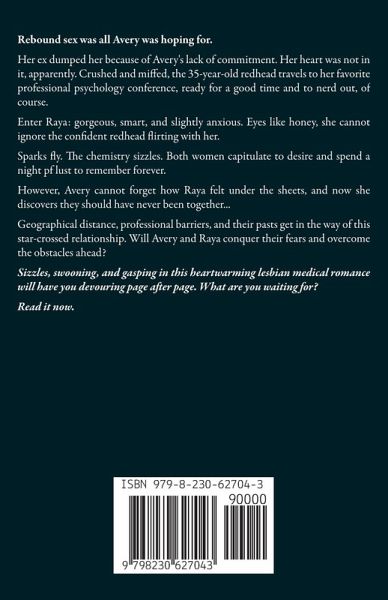 Rebound sex was all Avery was hoping for. Her ex dumped her because of Avery's lack of commitment. Her heart was not in it, apparently. Crushed and miffed, the 35-year-old redhead travels to her favorite professional psychology conference, ready for a good time and to nerd out, of course. Enter Raya: gorgeous, smart, and slightly anxious. Eyes like honey, she cannot ignore the confident redhead flirting with her. Sparks fly. The chemistry sizzles. Both women capitulate to desire and spend a night pf lust to remember forever. However, Avery cannot forget how Raya felt under the sheets, and now she discovers they should have never been together... Geographical distance, professional barriers, and their pasts get in the way of this star-crossed relationship. Will Avery and Raya conquer their fears and overcome the obstacles ahead? Sizzles, swooning, and gasping in this heartwarming lesbian medical romance will have you devouring page after page. What are you waiting for? Read it now.