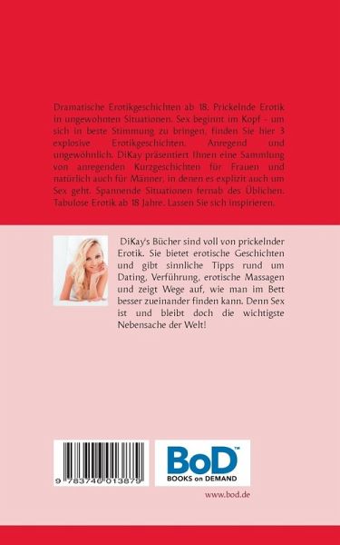 Lust und Verlangen - Erotische Dramen ab 18 bietet dramatische Erotikgeschichten ab 18. Prickelnde Erotik in ungewohnten Situationen. Sex beginnt im Kopf - um sich in beste Stimmung zu bringen, finden Sie hier 3 explosive Erotikgeschichten. Anregend und ungewöhnlich.DiKay präsentiert Ihnen eine Sammlung von anregenden Kurzgeschichten für Frauen und natürlich auch für Männer, in denen es explizit auch um Sex geht. Spannende Situationen fernab des Üblichen. Tabulose Erotik ab 18 Jahre. Lassen Sie sich inspirieren.