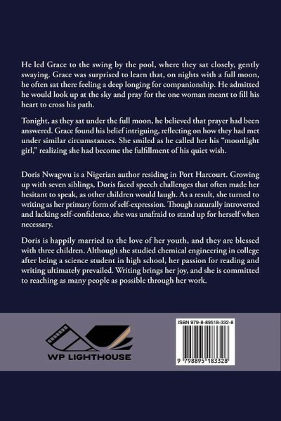 He led Grace to the swing by the pool, where they sat closely, gently swaying. Grace was surprised to learn that, on nights with a full moon, he often sat there feeling a deep longing for companionship. He admitted he would look up at the sky and pray for the one woman meant to fill his heart to cross his path. Tonight, as they sat under the full moon, he believed that prayer had been answered. Grace found his belief intriguing, reflecting on how they had met under similar circumstances. She smiled as he called her his "moonlight girl," realizing she had become the fulfillment of his quiet wish.