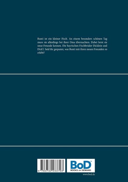 Bunti ist ein kleiner Fisch. An einem besonders schönen Tag muss sie allerdings bei ihrer Oma übernachten. Dabei lernt sie neue Freunde kennen. Die bayrischen Fischbrüder Dicklein und Dick'l. Seid ihr gespannt, was Bunti mit ihren neuen Freunden so erlebt?