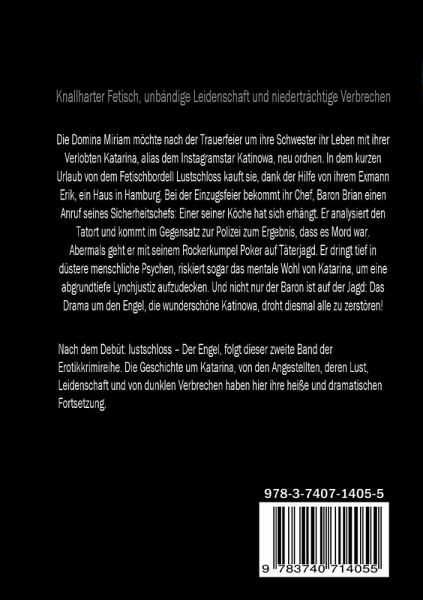 Die Domina Miriam möchte nach der Trauerfeier um ihre Schwester ihr Leben mit ihrer Verlobten Katarina, alias dem Instagramstar Katinowa, neu ordnen. In dem kurzen Urlaub von dem Fetischbordell Lustschloss kauft sie, dank der Hilfe von ihrem Exmann Erik, ein Haus in Hamburg. Bei der Einzugsfeier bekommt ihr Chef, Baron Brian einen Anruf seines Sicherheitschefs: Einer seiner Köche hat sich erhängt. Er analysiert den Tatort und kommt im Gegensatz zur Polizei zum Ergebnis, dass es Mord war. Abermals geht er mit seinem Rockerkumpel Poker auf Täterjagd. Er dringt tief in düstere menschliche Psychen, riskiert sogar das mentale Wohl von Katarina, um eine abgrundtiefe Lynchjustiz aufzudecken. Und nicht nur der Baron ist auf der Jagd: Das Drama um den Engel, die wunderschöne Katinowa, droht diesmal alle zu zerstören!Nach dem Debüt: lustschloss Der Engel, folgt dieser zweite Band der Erotikkrimireihe. Die Geschichte um Katarina, von den Angestellten, deren Lust, Leidenschaft und von dunklen Verbrechen haben hier ihre heiße und dramatischen Fortsetzung.