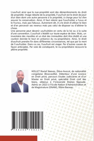 L'usufruit ainsi que la nue-propriété sont des démembrements du droit de propriété. Image réduite de la propriété, l'usufruit est le droit de jouir d'un bien dont une autre personne à la propriété, à charge pour lui d'en assurer la conservation. Ainsi, il faut retenir que l'usufruitier a l'usus et le fructus, mais pas l'abusus. Autrement dit, il a le droit d'utiliser le bien et d'en percevoir ses revenus mais pas celui de disposer ou d'aliéner la chose.Une personne peut devenir usufruitière en vertu de la loi ou à la suite d'une convention. L'usufruit s'établit sur toute espèce de bien. Mais, un inventaire des meubles et un état des immeubles doit être établi et une caution donnée le tout en présence du nu-propriétaire. Ainsi, le droit d'usufruit prendre fin dans différentes circonstances, tel que par la mort de l'usufruitier. Dans ce cas, l'usufruit est viager. Par d'autres causes de façon anticipées. Par voie de conséquent, le nu-propriétaire recouvre la pleine propriété.