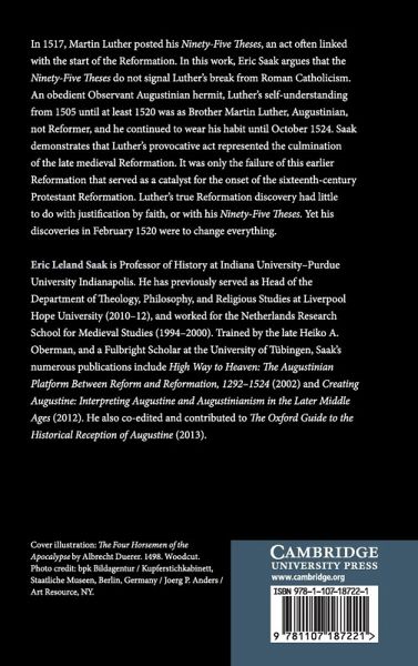 This book is intended for scholars and students of the Reformation and later Middle Ages, and for all those interested in Luther and his historical context, including historians, church historians, theologians, pastors, and the general public.