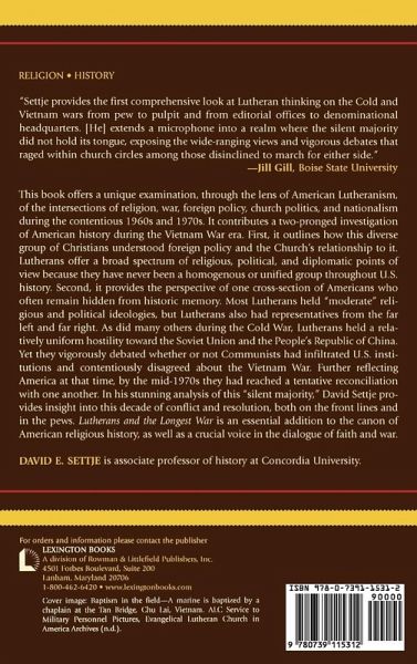 Highly Recommended. -- W. T. Lindley, Union University CHOICE [Settje's] approach and careful reading of sources are admirable. Lutherans and the Longest War is an excellent contribution to the genre of denominational studies and a useful starting point for exploring broader issues of religious assent, ambivalence, and dissent during the Cold War. H-Net: Humanities and Social Science Reviews Online, April 2008 The author does an admirable job in concisely summarizing the historical literature on both the origins of the American war in Vietnam and the landscape of American Lutheranism in the era, carefully distinguishing between the major Lutheran bodies without too much jargon... [Settje] has a keen eye for especially catching phrases. -- Perry Bush Journal of American History David Settje provides a close examination of a period largely neglected by other Lutheran historians: the Cold War in general and the Vietnam War in particular. Settje provides the first comprehensive look at Lutheran thinking on the Cold and Vietnam wars from pew to pulpit, and from editorial offices to denominational headquarters. It extends a microphone into a realm where the silent majority did not hold its tongue, exposing the wide-ranging views and vigorous debates that raged within church circles among those disinclined to march for either side. -- Jill Gill, Boise State University
