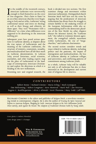 In the middle of the twentieth century, American Lutherans were newsworthy enough to find themselves on the cover of Time magazine. Their claim to fame? In an era when American churches were beginning to look and act alike, Lutherans' strong confessional nature and stress on theology as well as their liturgy and ethnicity set them apart. They were "Protestants with a difference" at a time when differences were supposed to be dissolving in the American melting pot. Subsequent years have posed serious questions to Lutheran identity, as disputes about the true nature of Lutheranism and the meaning of the Lutheran confessions, the structure of ministry, ecumenism, sexuality, and multiculturalism have all left their mark on Lutheran denominations. In Lutherans Today several historians, social scientists, journalists, and other leading experts map out the place of Lutheranism in the landscape of contemporary American Christianity and explore the directions in which it is heading in the new millennium. Presenting new and original research, the book is divided into two sections. The first examines change and movements within American Lutheranism. Distinguished church historian Mark Noll here sets the scene by arguing that the predicament of American Lutheranism has always been the struggle to remain faithful to the enduring witness of the European Reformation while also accommodating itself to the democratic pluralism of the New World. Six other chapters discuss the Missouri Synod, the "Lutheran Left," the Called to Common Mission agreement, the evangelical catholic movement within Lutheranism, the rise of "megachurches," and Lutheran charismatics. The second section considers trends and issues related to Lutheran identity, including politics and the pastorate, the impact of immigration and multiculturalism, the loss of Lutheran identity at Lutheran colleges and universities, and conflicting patterns of commitment among Lutheran youth. As a whole, Lutherans Today will be valuable not only to all Lutherans but also to those interested in the development and current state of religious life in America. Contributors: "Robert Benne Richard Cimino Maria Erling Mark Granquist Dan Hofrenning Robert Longman Steve Montreal Mark Noll Jim Petersen Eugene C.Roehlkepartain Alvin J. Schmidt Scott Thumma Mary Todd Jeff Walz"